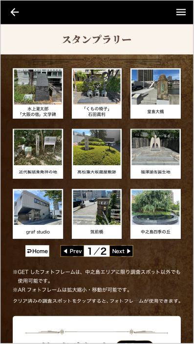 ARフォトをGET!GETしたARフォトは、中之島周辺に限り調査スポット以外でも使用可能です。